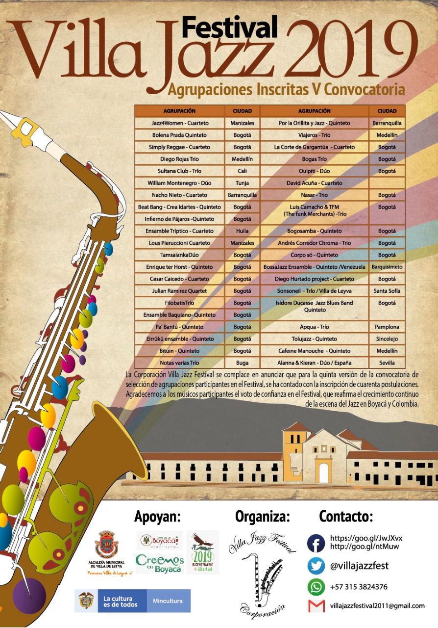 villa de leyva celebra la 5ta. version del festival Villa Jazz/agrupaciones inscritas/Programación
